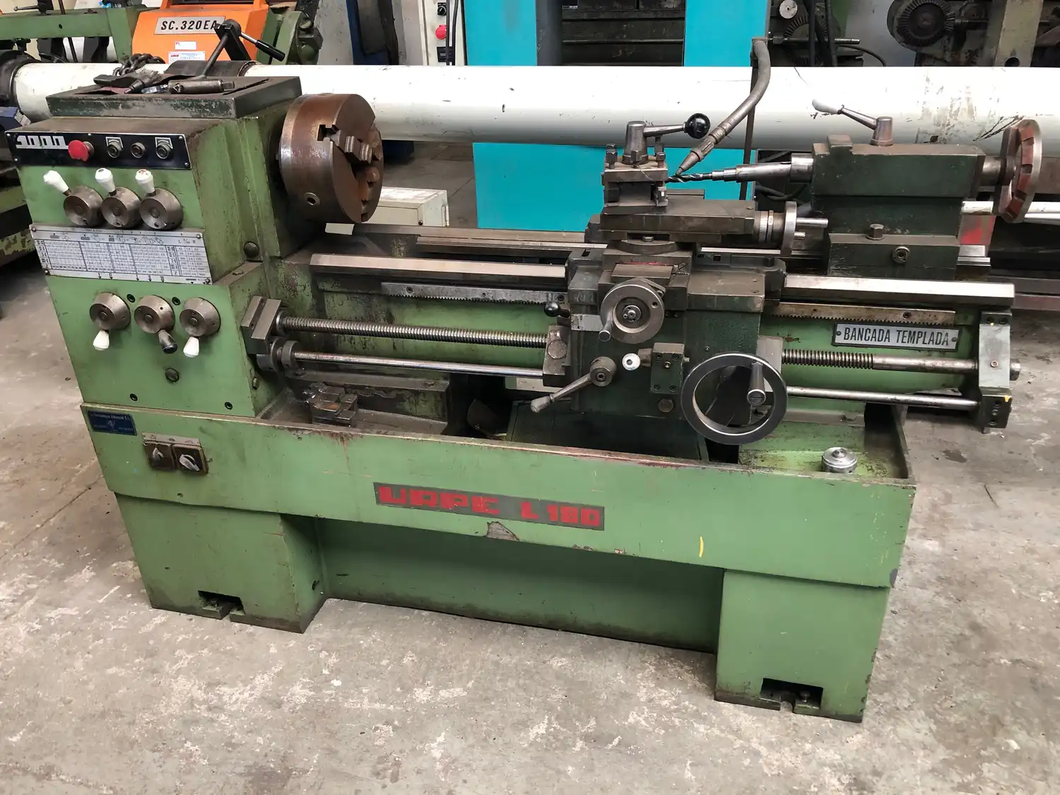 Torno de ocasion marca URPE modelo L-180 de 1.000 mm entre puntos.
